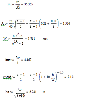 Ширина полоски шлейфа определяется аналогично ширине основной