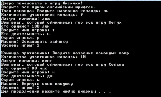 //название командыuchastniki; //число участников командыlozung[64]; // лозунг