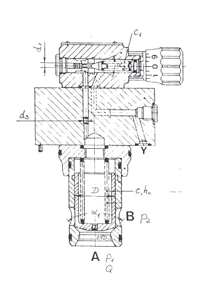 идет на слив, на дросселе возникает перепад давления, под действием которого