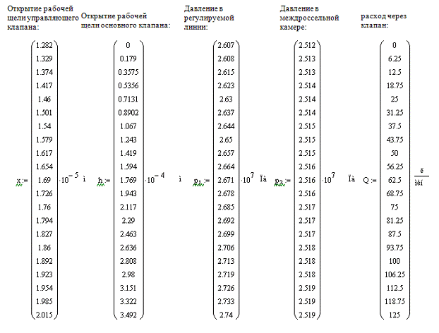 силы от открытия рабочей щели клапана. Для этого воспользуемся уравнениями из