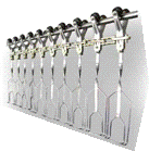 конвейера захватывает контейнер за серьгу и подает к месту выгрузки на