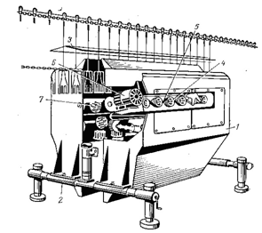ножом, направляющих, кронштейна, валов, маховика и лотка.