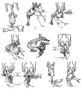 из следующих основных операций: навешивание на конвейер; оглушение или