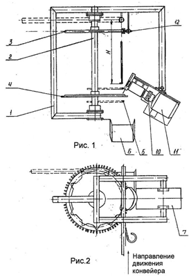к рабочему), закрепляя ноги в пазах подвески конвейера (рис. 2).