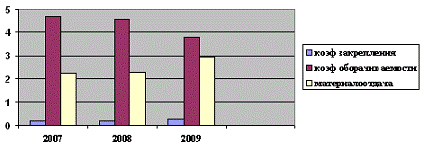 руб. (26,45%), в 2009 году в сравнении с 2008 годом увеличилась на 104265 тыс.руб. (33,97%) и составили 411218 тыс.руб. Коэффициент загрузки средств в обороте за