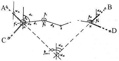 aAB, aCD - исходные дирекционные углы. Пункты полигонометрич. хода закреплены