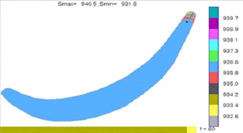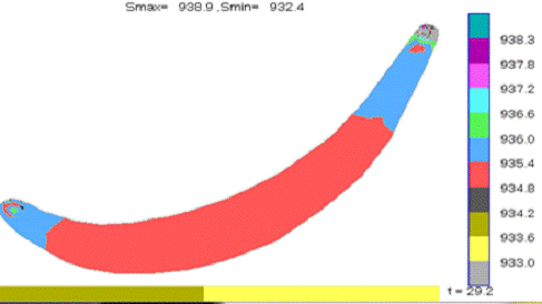 поле лопатки (bu.tem). Результат будет занесен в файл с именем bu.sig. Максимальная температура 940,5 0С. По результатам