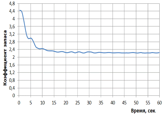 вывод, что после 16 секунд работы коэффициент запаса устанавливается