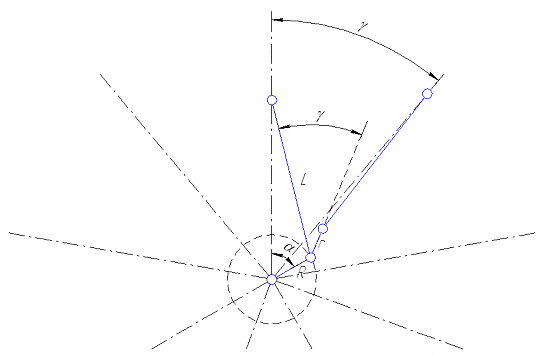 звенья кривошипно-шатунного механизма, по значениям которых построены