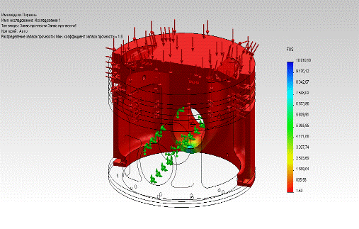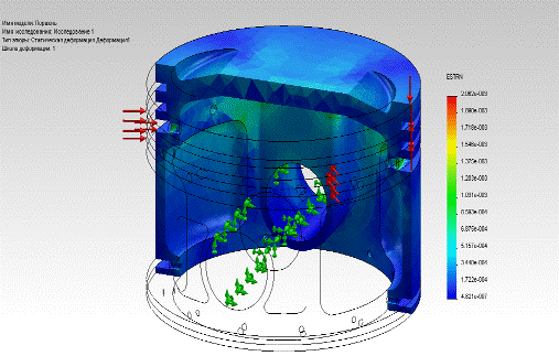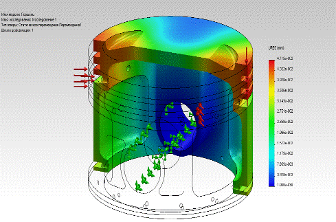 Определены напряжения и деформации поршня с