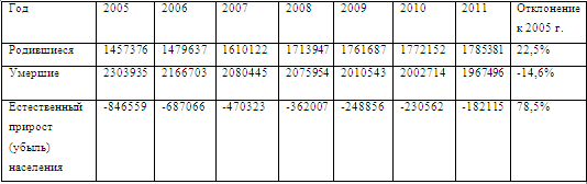 населения в РФ характеризуется естественной убылью населения, так в 2011 году