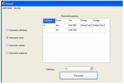 · написание подпрограмм, реализующих ввод таблиц, полей и ключей;