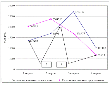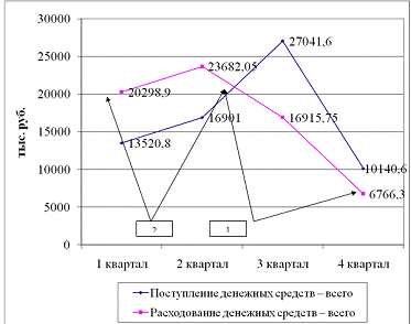 3. Динамика изменения поступления и расходования денежных средств, (тыс. руб.).