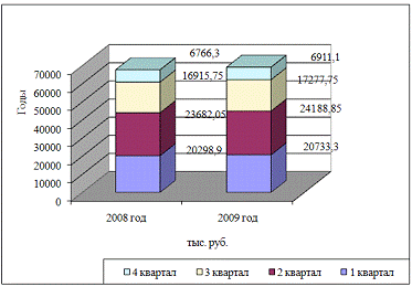по значениям удельного веса кварталов за 2008 - 2009 гг. (тыс. руб.)