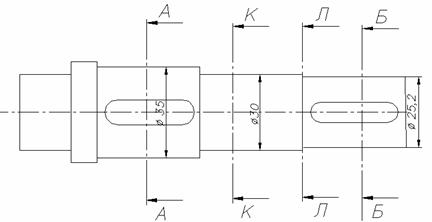Сечение Б-Б. Концентрация напряжения обусловлена наличием шпоночной канавки
