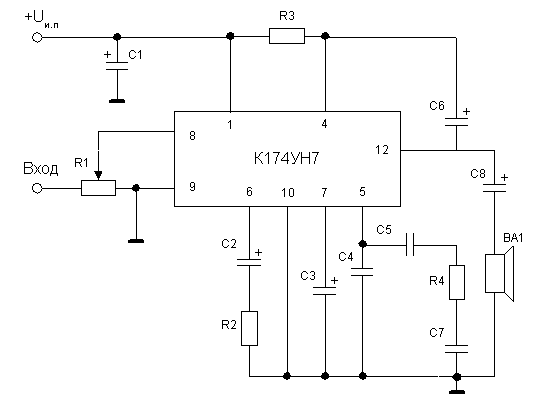 (вывод 9). Усилитель имеет линейную частотную характеристику во всем диапазоне