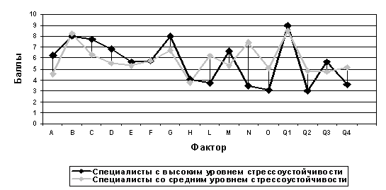 опросника Кеттела у специалистов сферы активных продаж со средним уровнем стрессоустойчивости