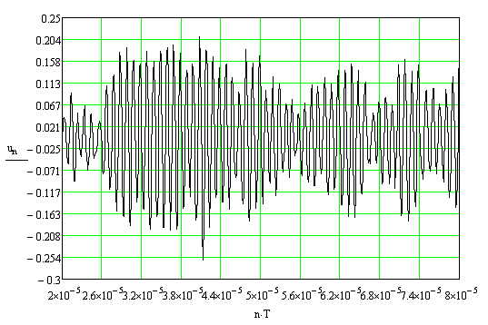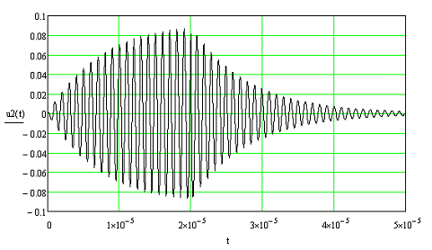 Рис. 3. Радиоимпульс на выходе резонансного усилителя