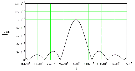 Рис. 6. Модуль спектральной плотности радиоимпульса на выходе