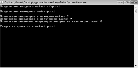если обнаружена синтаксическая ошибка оператора: в выходной файл вносится
