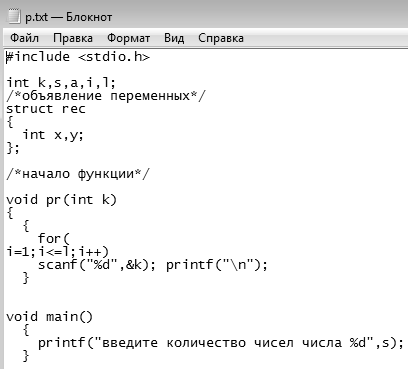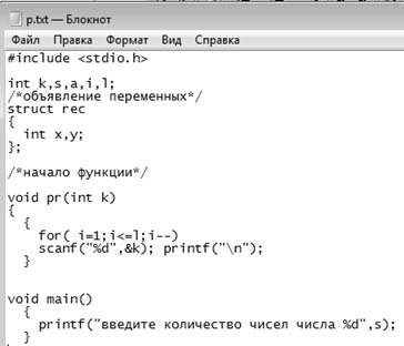 текстом на языке Си, включающий в себя перевод обозначенных заданием