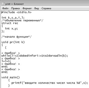 языке Паскаль в текст программы на языке Си".