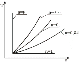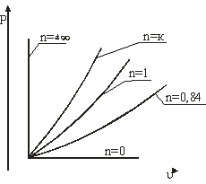 изобара, n=0,84 - политропа , n=1 - изотерма. n=к=1,4 - адиабата, n=∞ - изохора.