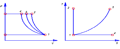 1 - 2 адиабатное сжатие.