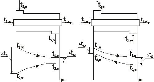 схема имеет меньшую поверхность чем у прямоточной, т. к. средний температурный