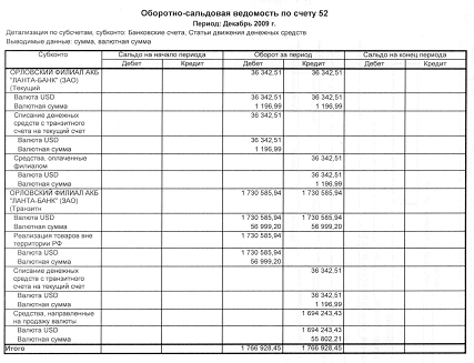 операции (выписки денежно-расчетного документа), на последние число отчетного