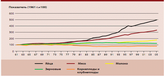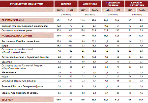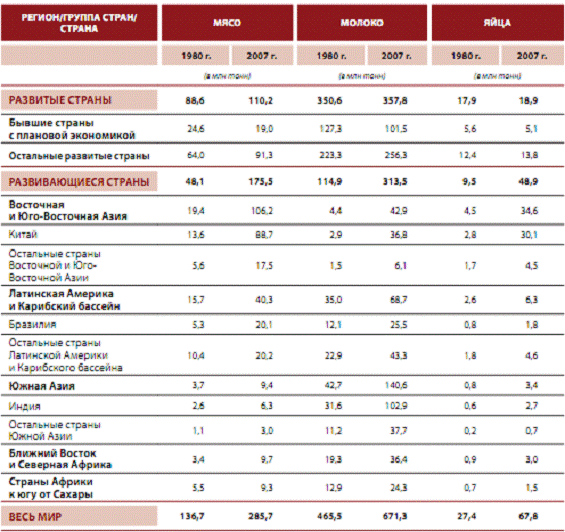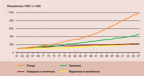 особенно производства мяса, наблюдался в Китае и Бразилии. В период с 1980 по