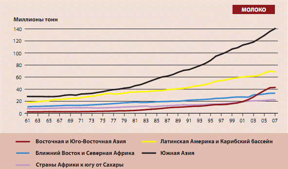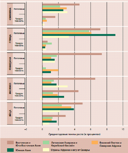 мяса, молока и яиц росло и в странах Африки к югу от Сахары, но менее быстрыми