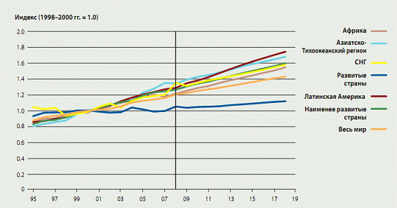 и Центральной Азии. Максимальный рост наблюдался в Восточной и Юго-Восточной