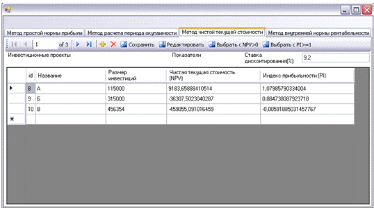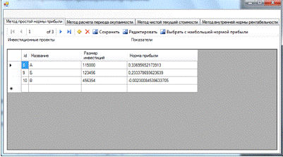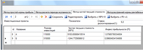 razmer;.Rows[i].Cells[3].Value = NPV;.Rows[i].Cells[4].Value = PI;