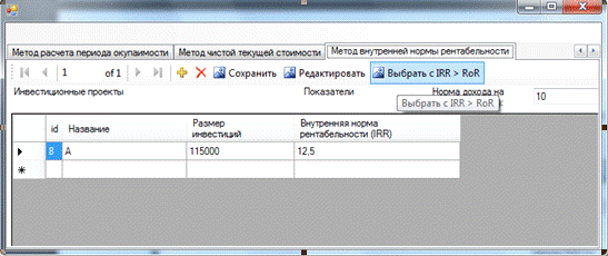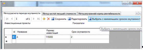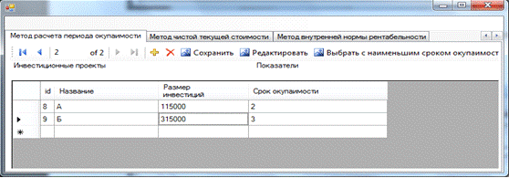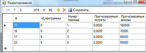 Convert.ToDouble(textBox1.Text); }{ }[] rows =.investiciiDataSet.Прогнозируемые_денежные_потоки.Select("id_программы="