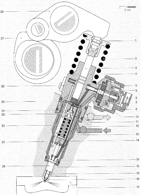 Рис 7.8 Конструкция насос-форсунки для двигателя легкового автомобиля