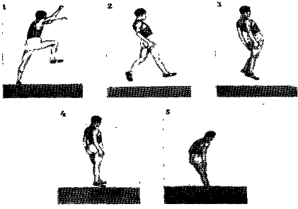 толчковой ногой впереди, спортсмен выполняет прыжок в яму с песком или на маты.