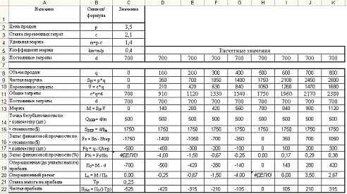 операционной и чистой прибыли, то все эти функции натурального объема продаж