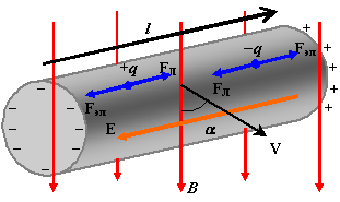 направленная вдоль проводника. Под действием силы Лоренца свободные заряды