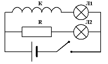 замыкании ключа лампа Л1 загорается позже, чем лампа Л2. Нарастанию тока в цепи