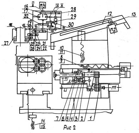 от регулируемого привода М2 через зубчатые колеса 13 и 12. С помощью этого