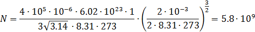 = 0.999 ≈ 1. Тогда число молекул найдем как интеграл
