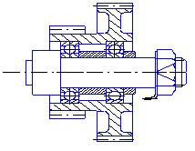 редуктор вращает гайку, базирующуюся на радиальных и упорных шарикоподшипниках.