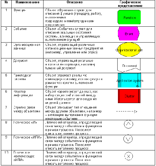 смысла нотации eEPC достаточно рассмотреть основные используемые типы объектов