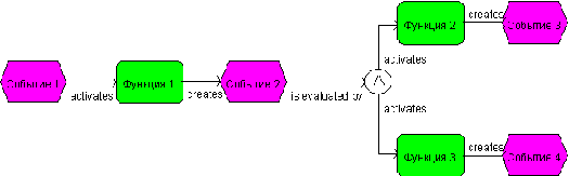 1 «активирует» или инициирует выполнение Функции 1. Функция 1 «создает» Событие