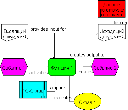 различных объектов методологии ARIS может быть рассмотрено на примере фрагмента модели