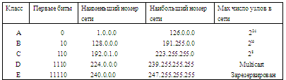 Для стандартных классов сетей