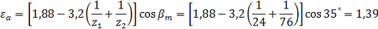 с - число зацеплений зуба за