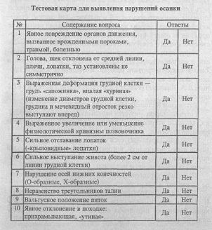 различный подход к лицам, имеющим различные отклонения в осанке, и больным,