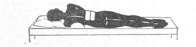 боку; под выпуклую часть грудной клетки подложен ватный валик, ноги разведены.